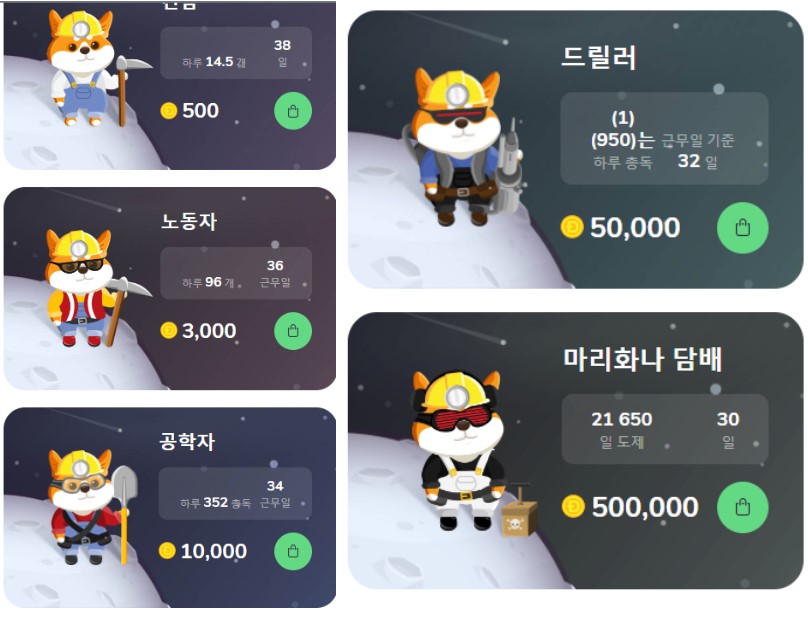 초기에는 수학 문제를 풀면 이 도지코인을 1개에서 많게는 수백만 개를 받을 수 있었다. 현재는 도지 코인을 채굴할 수 있는 사이트가 많지만, 가장 유명한 사이트로 wowdoge (와우 도지)라는 사이트가 존재한다. 하지만 사기인 사이트가 많기 때문에 주의해서 해야 할 필요가 있다. 그림과 같은 캐릭터를 구매하여 채굴을 하면 되는 시스템이다.
